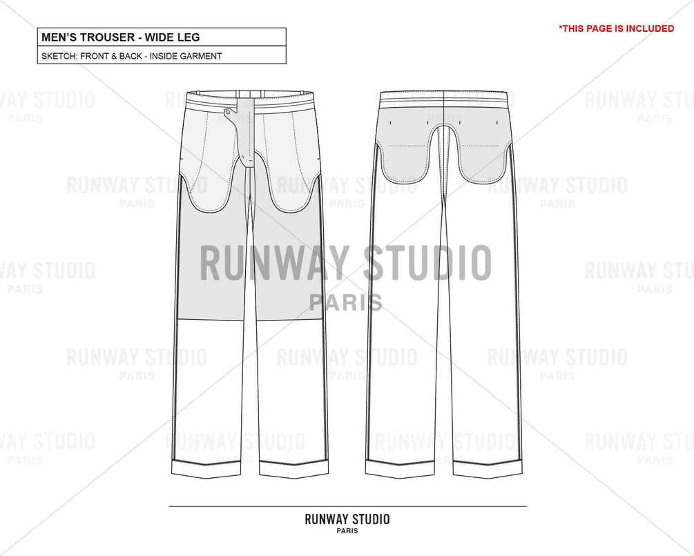 Fashion flat sketch pack containing a MEN'S WIDE LEG TROUSER vector design.