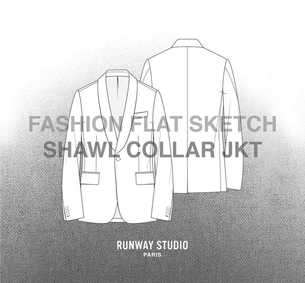Fashion flat sketch pack containing a MEN'S SHAWL COLLAR TUXEDO JACKET vector design.