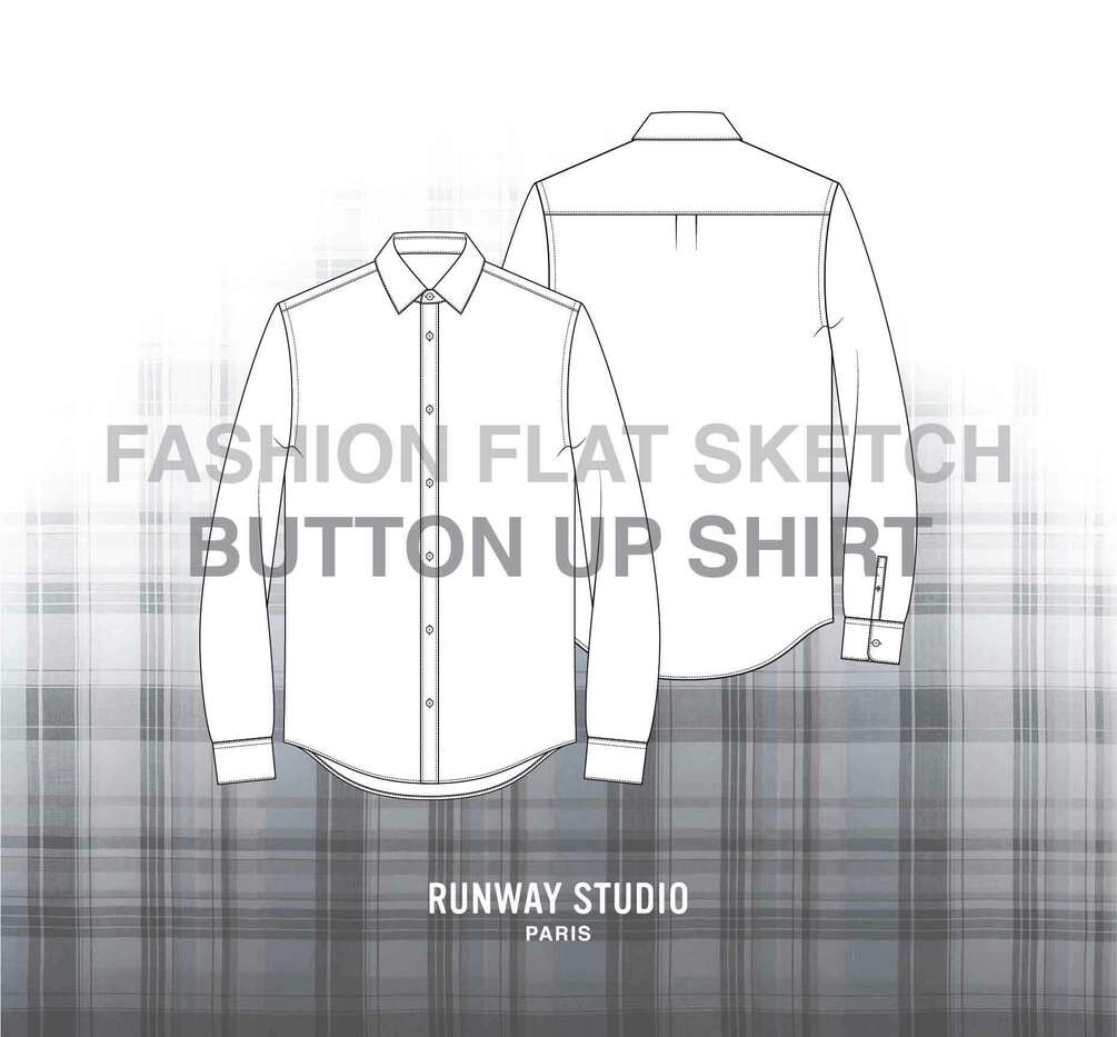 Fashion vector sketch pack containing a MEN'S CLASSIC BUTTON UP SHIRT design with pointed collar.